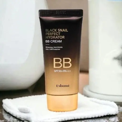 Eshumi Black Snail Perfect Hydrator BB Cream offers a creamy and smooth application. It provides a natural coverage finish without feeling sticky, helping to even out skin tone and create a radiant look. Suitable for daily use as part of your skincare and makeup routine.